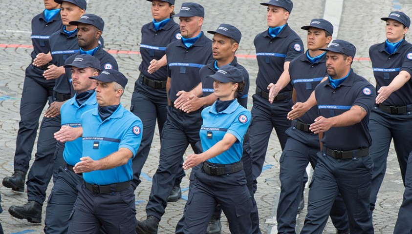 L’administration pénitentiaire, pour laquelle c’était une première, représentée par une délégation composée d’élèves directeurs, officiers, surveillants et personnels de l’Enap, et emmenée par Sophie Bleuet, directrice de l’Ecole, a descendu les Champs Elysées au pas.
