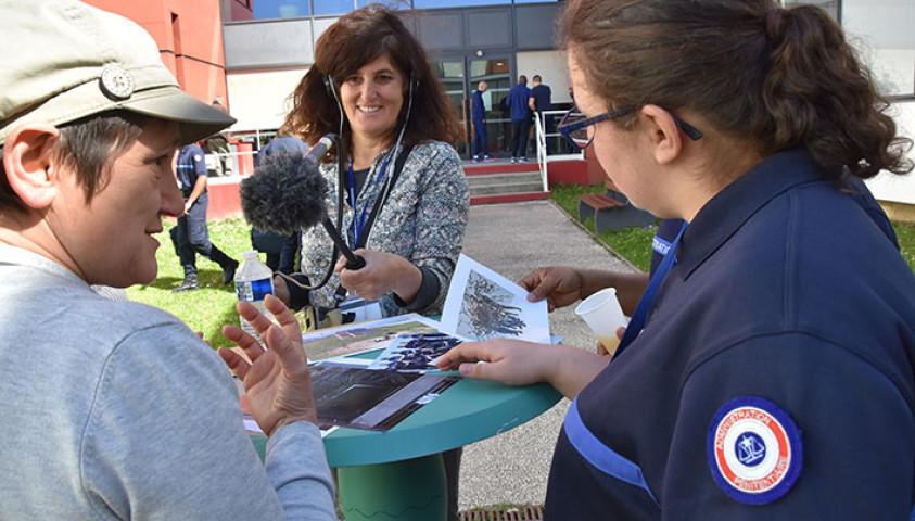 Près de 130 personnes ont participé à la dizaine de balades proposées dans le cadre du vingtième anniversaire de l’Énap à Agen. Élèves en début de formation ou fraîchement diplômés, personnels de l’Énap, représentants de l’Administration pénitentiaire et public agenais ont partagé ce temps de création et de découverte d’un territoire profondément marqué par l’implantation de l’école en 2000. Accompagnés par Katia Kovacic et munis d’un casque audio, ils ont arpenté Agen-sud, entre zone industrielle, nouveaux quartiers et traces d’un passé rural, à l’écoute des histoires et du ressenti de ceux qui ont vu naître et grandir ce territoire et cet espace architectural en perpétuelle mutation.