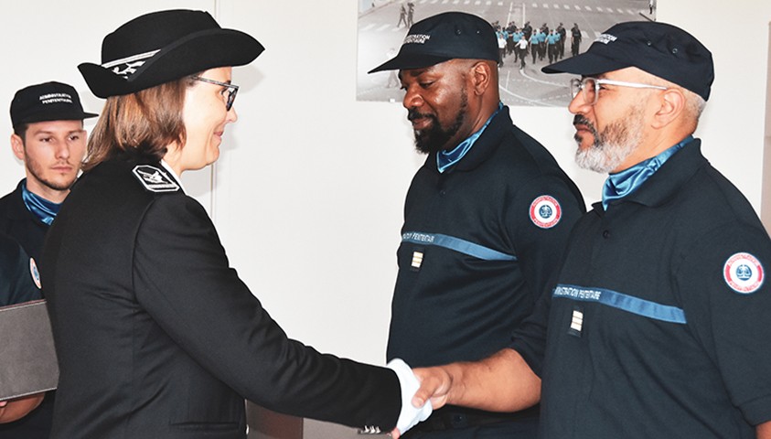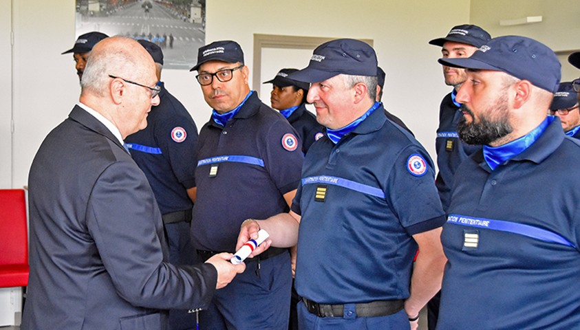 Le Directeur a rappelé l’étape importante de l’accession au grade d’officier « Par ce nouveau grade, c’est une étape importante que vous franchissez et votre vie professionnelle de demain ne sera pas comme votre vie professionnelle d’hier ». Le directeur concluait son discours en rappelant la fierté que doit être celle de leur promotion : « Je tenais enfin à vous dire que vous devez et vous pouvez être fiers et votre famille et vos proches peuvent l’être aussi, de votre parcours, de votre carrière et des responsabilités qui sont les vôtres. Soyez heureux et fier de travailler pour cette administration, de remplir ces missions au bénéfice de l’intérêt général et du service public de la Justice. Continuez à en être digne. »