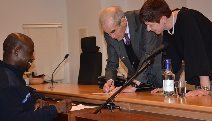 Sophie Bleuet, directrice de l’Ecole, clôture la séance en remerciant chaleureusement Monsieur Robert Badinter pour le précieux présent qu’il a pris soin de lui remettre : l’original du décret de la convention nationale portant que toutes les personnes détenues dans des maisons d’arrêt auront la même nourriture, datant du 16 novembre 1793, sera minutieusement conservé par le Centre de ressources sur l’histoire des crimes et des peines.