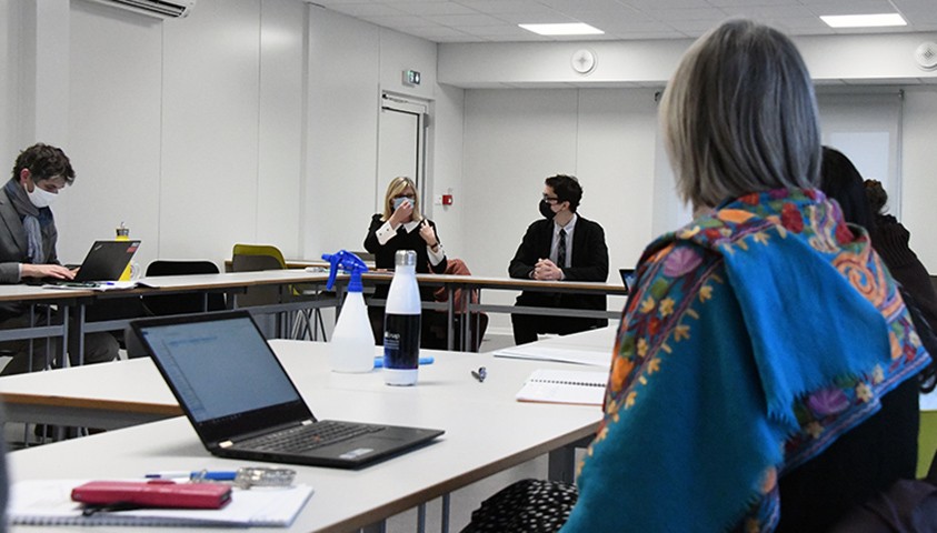 Ce fut un moment riche d’échanges sur la collaboration de l’école avec les membres de l’association sur la programmation d’actions de sensibilisation et de prévention à la lutte contre les discriminations liées à l’orientation sexuelle et à l’identité de genre. M. Dorleac a expliqué qu’une mallette pédagogique était en cours d’élaboration afin d’apporter des éléments de formation aux intervenants. Les échanges ont également porté sur l’accueil des personnes transgenres dans leur environnement professionnel. Force est de constater qu’il existe des interrogations liées aux pratiques professionnelles sur lesquelles il est nécessaire de sensibiliser les acteurs RH, les cadres et les responsables de service par un module spécifique notamment afin de garantir une réelle intégration au sein des équipes.