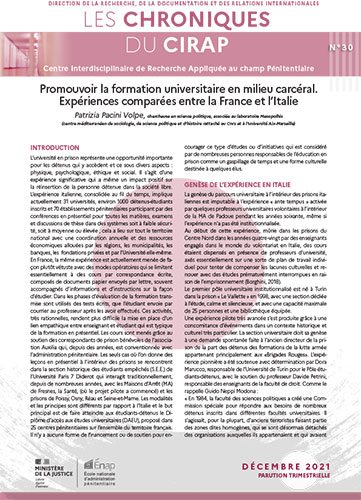 Lire Les Chroniques du Cirap, n°30 : Promouvoir la formation universitaire en milieu carcéral. Expériences comparées entre la France et l'Italie