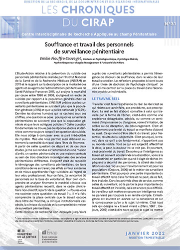 Lire les Chroniques du Cirap, n°31 : Souffrance et travail des personnels de surveillance pénitentiaire