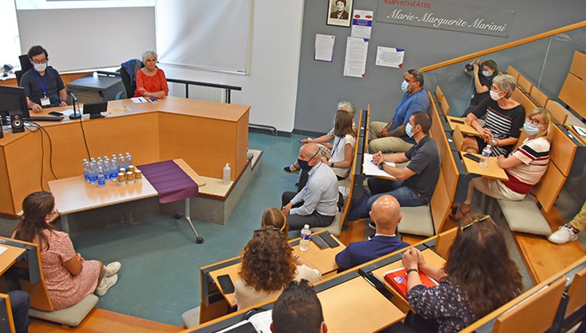 La haute fonctionnaire a perçu l’investissement de la communauté pédagogique de l’Énap au travers des présentations qui lui ont été faites et de l’attachement de l’école à essaimer les valeurs de respect auprès des personnels et des élèves qui contribuent à une meilleure qualité de vie au travail.