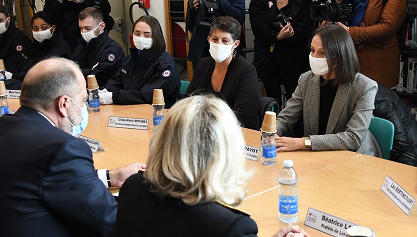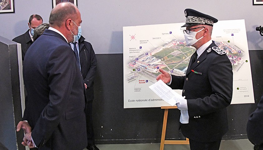 En présence de Béatrice Lagarde, Préfète de Lot et Garonne, Brigitte Ernoult-Cabot, directrice-adjointe de l’administration pénitentiaire, Jacques Launay, président du conseil d’administration de l’Ecole, et accompagné par Christophe Millescamps, directeur de l’Enap, le ministre a ensuite assisté à une présentation de l’Enap, de son projet d’extension, et de son rôle dans le développement économique du territoire, en partenariat avec la Chambre de Commerce et d’Industrie de Lot et Garonne. Il a ensuite assisté à un atelier de formation sur l’usage de la force, et à la présentation d’un Programme d’Alternatives à la Violence (PAV) au bâtiment de simulation. Ce programme témoigne de la capacité de l’Ecole à repérer des pratiques professionnelles, les modéliser, et former les agents, avant de les mettre en œuvre sur le terrain. Au cours de cet atelier, le Ministre réitéré son attachement à l’ensemble des missions de l’Administration Pénitentiaire : La sécurité, l’insertion et la prévention de la récidive.