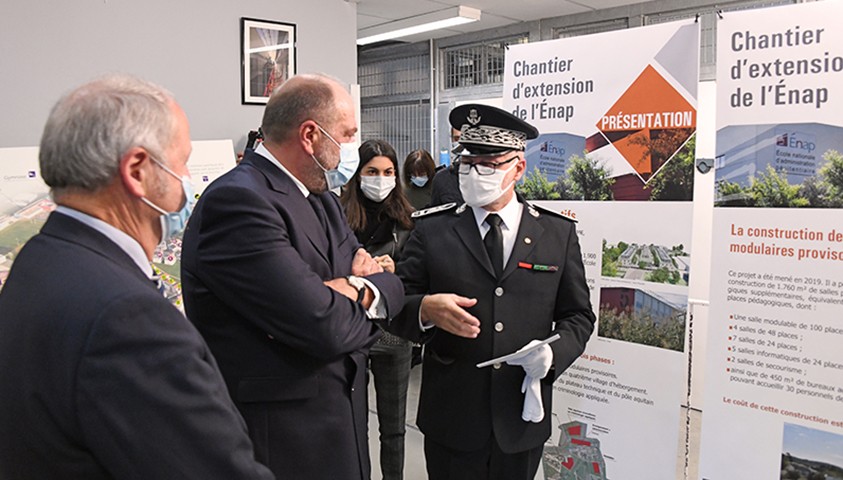 « Les personnels de cette administration ont démontré, et manifestent au quotidien, leur détermination et leur capacités d’adaptation. Les établissements pénitentiaires ont continué à fonctionner. Cet exploit est la manifestation des forces vives de cette administration. Mesdames et Messieurs, cet engagement vous honore. Je salue tout particulièrement votre choix courageux d’intégrer l’administration pénitentiaire, et de la servir dans ce contexte. Mesdames et messieurs cet engagement vous honore. La crise sanitaire a conduit l’école à se surpasser pour adapter ses méthodes d’enseignement, réalisant des efforts numériques conséquents en terme de formation à distance, pour assurer la continuité des formations. Je tiens ainsi à remercier l’ensemble des personnels de l’Enap ».